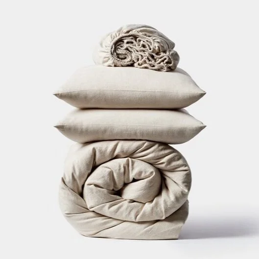 When looking for bedding we look for the following attributes: flexibility, lightness, stain-resistance, abrasion-resistance, and drapability. Natural Fibers check all of our boxes.